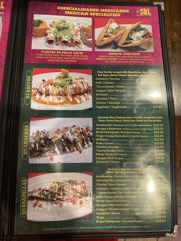 El Sol Tequileria, a vibrant Mexican restaurant located at 1227 11th St NW Washington, DC, is a must-visit spot for lovers of authentic Mexican cuisine. This Latinx-owned establishment offers a variety of dishes, from classic margaritas to hearty burritos and flavorful seafood tacos. Customer reviews rave about the delicious guacamole, queso fundido, and mixed fajita platter. The menu features updated options and prices, making it a great choice for a casual lunch or dinner. Highlights include the Mole Enchiladas, Shrimp Enchiladas, Quesadillas, and Queso Fundido. While the service can be a bit slow during busy times, the quality of the food makes it well worth the wait. Overall, El Sol Tequileria provides a cozy atmosphere, friendly service, and delectable Mexican dishes that will leave you craving more.